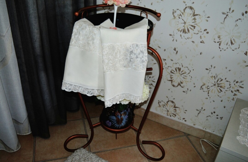 TELO BAGNO ARTIGIANALE MIS CM 100X155 CON TULLE E PIZZO ART.