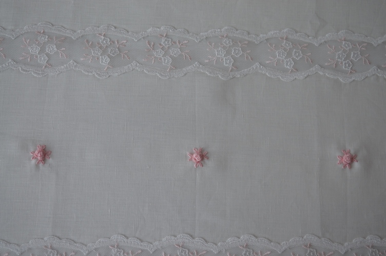 COLORE: ASCIUGAMANO DI LINO AVORIO CON TULLE BICOLORE ROSA E AVORIO