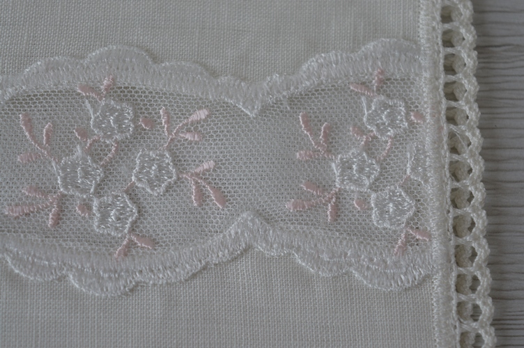 COLORE: ASCIUGAMANO DI LINO AVORIO CON TULLE BICOLORE ROSA E AVORIO
