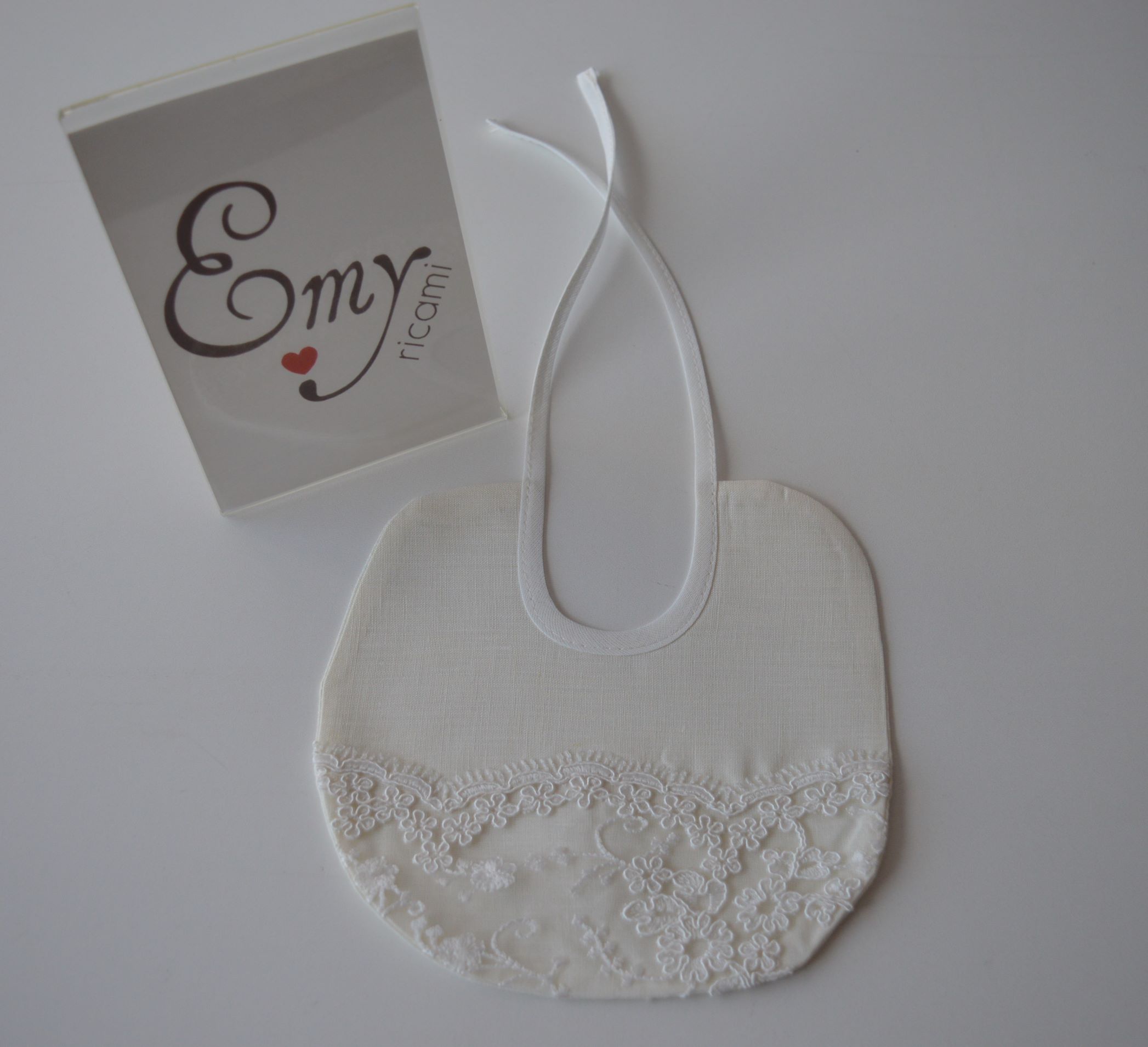 BAVETTA MANIFATTURA ARTIGIANALE DI EMY RICAMI ART MANUELE COLORE AVORIO COMP. 100% PURO LINO ITALIANO IMPREZIOSITA CON PIZZO REBRODE' MIS CM 18X18 CONTATTARE SE SI DESIDERA PERSONALIZZARE IL PRODOTTO