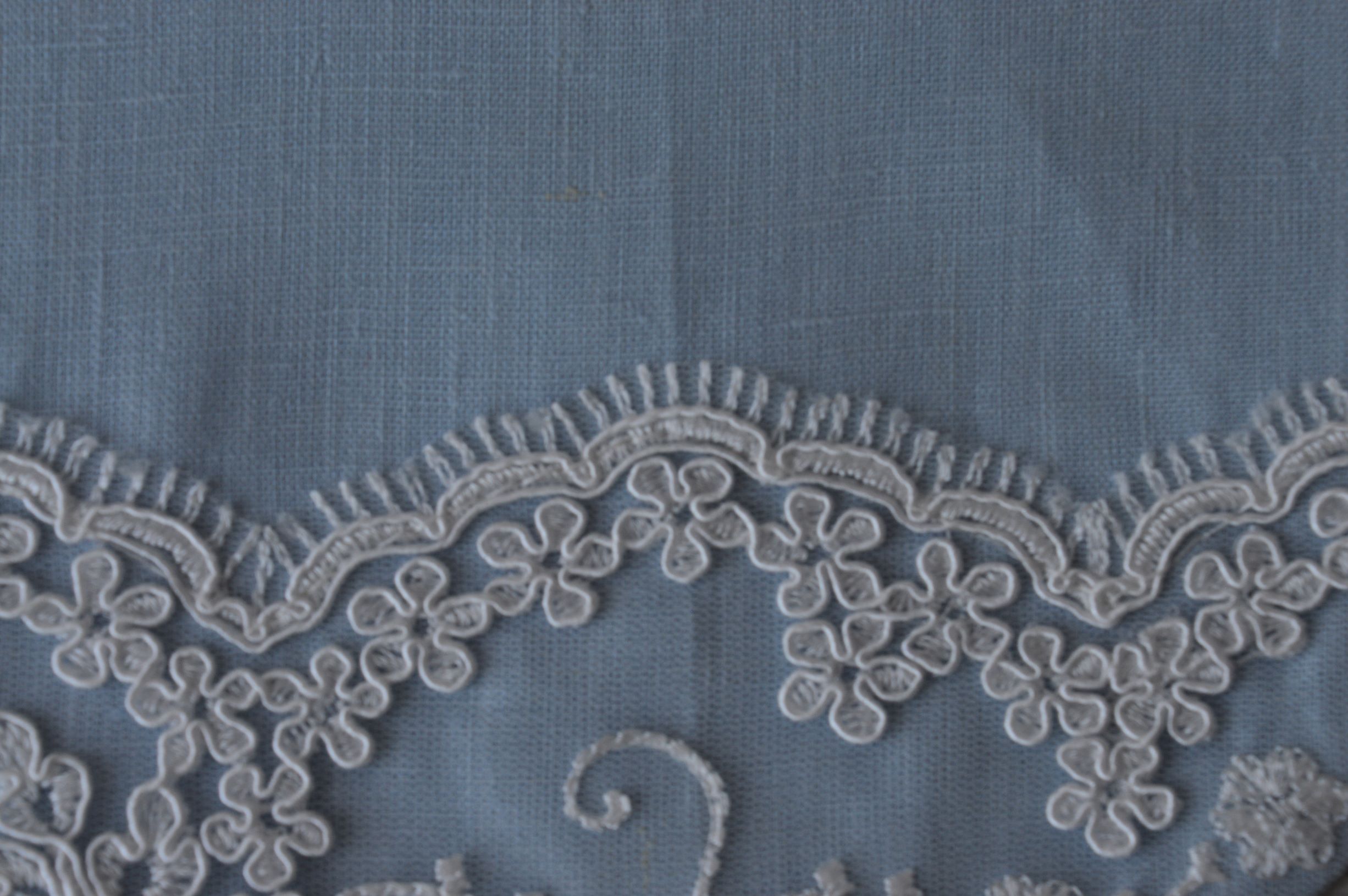 BAVETTA MANIFATTURA ARTIGIANALE ART MANUELE COLORE CELESTE COMP. 100% PURO LINO ITALIANO IMPREZIOSITA CON PIZZO REBRODE' MIS CM 18X18 CONTATTARE SE SI DESIDERA PERSONALIZZARE IL PRODOTTO