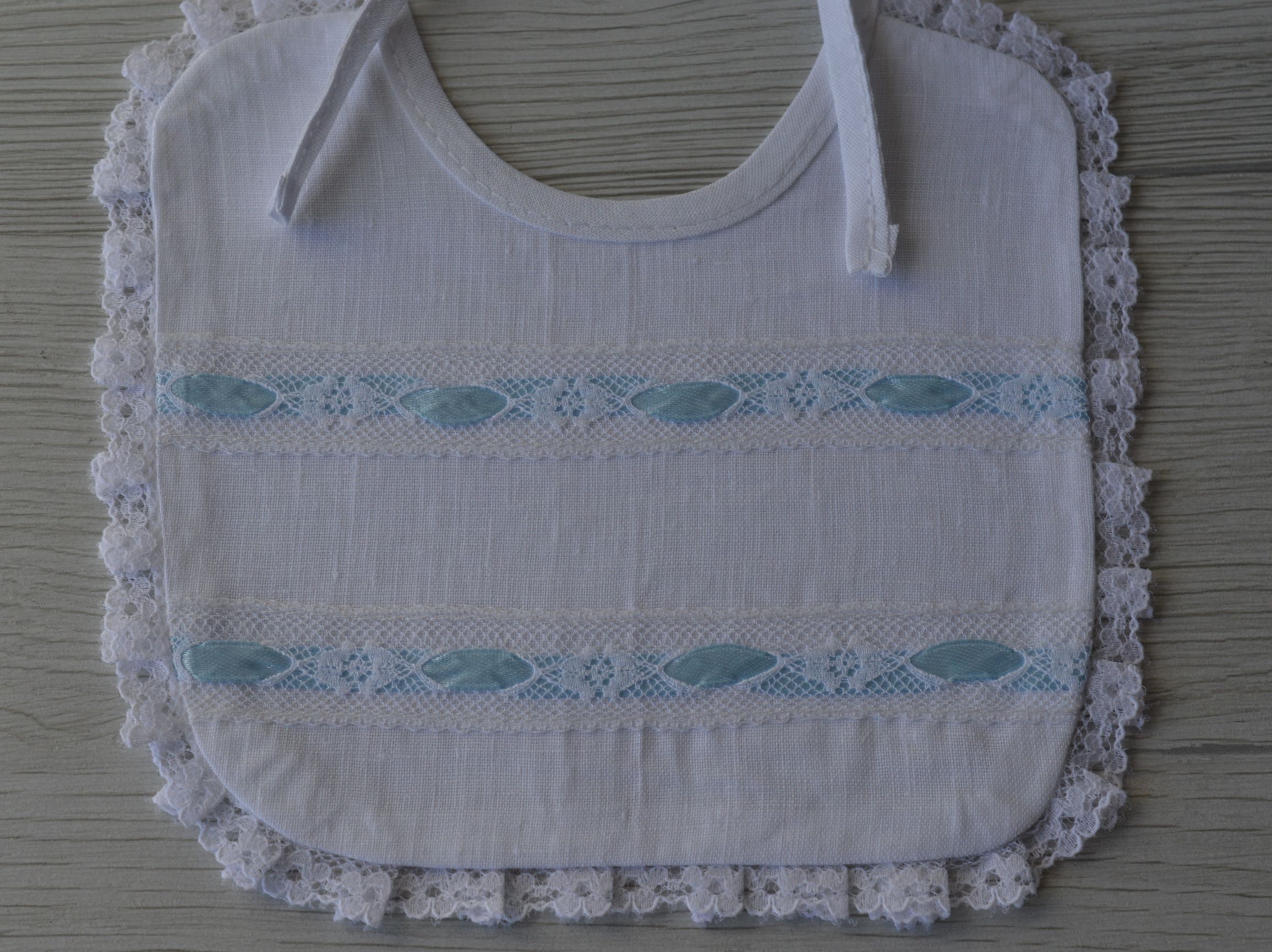 Bavetta in puro lino e pizzo di Emy ricami col bianco art Calcinaia