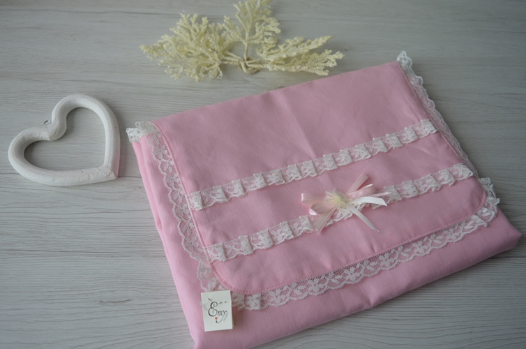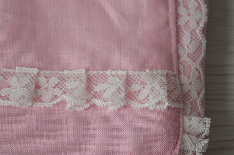 MUSSOLA PER NASCITA IN PURO LINO CON PIZZO E RICAMO A MANO D