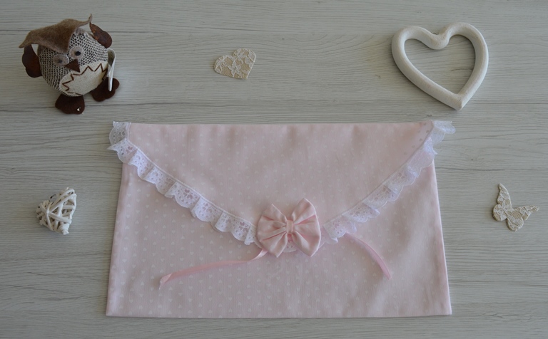 BUSTA TASCA PRIMO CAMBIO DI PIQUET COL ROSA E CUORINI BIANCHI ART EMMA