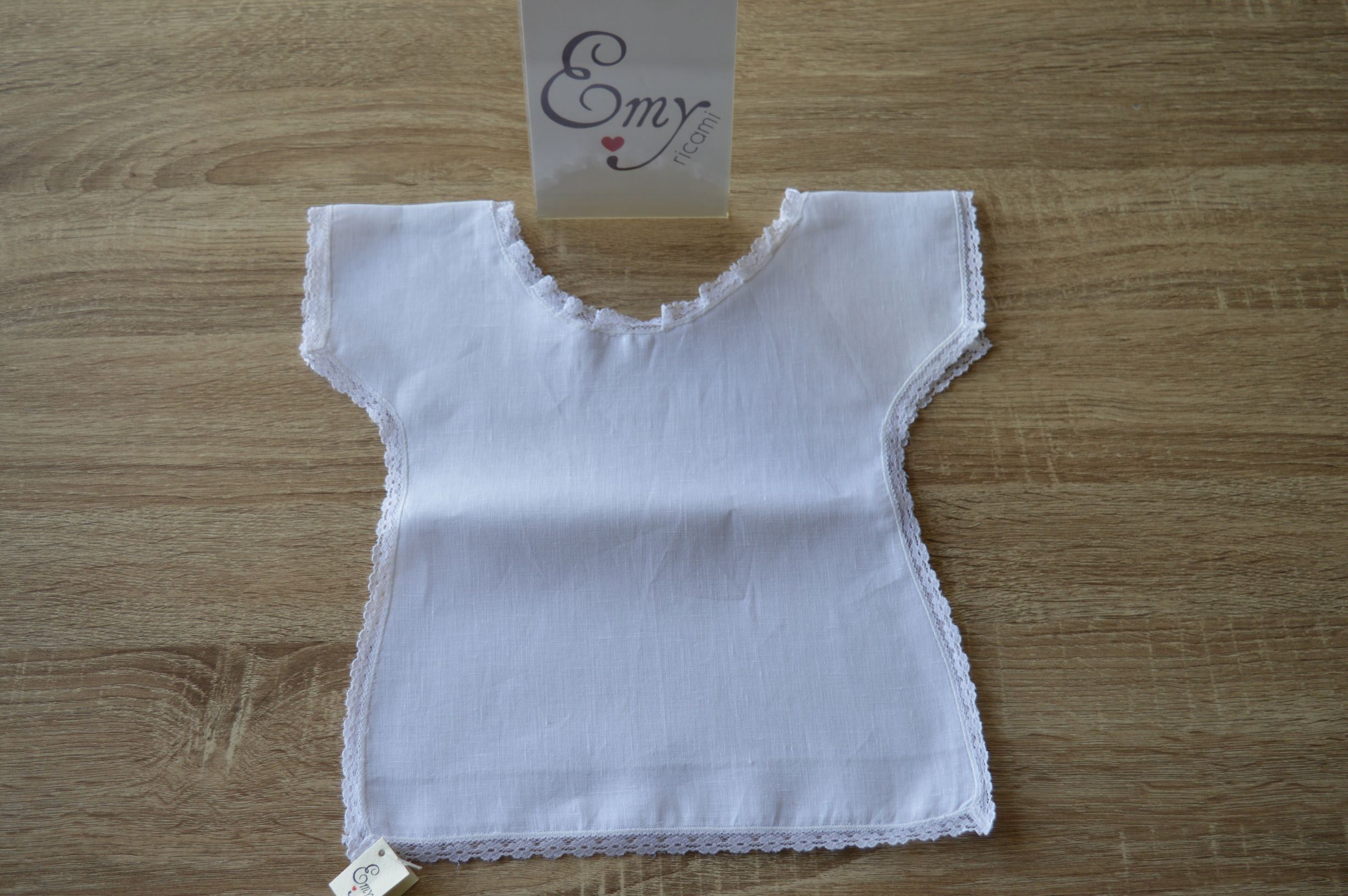 camicino battesimale artigianale di Emy ricami composizione 100% puro lino italiano rifinito con un pregiatissimo pizzetto colore bianco su richiesta si puo anche personalizzare