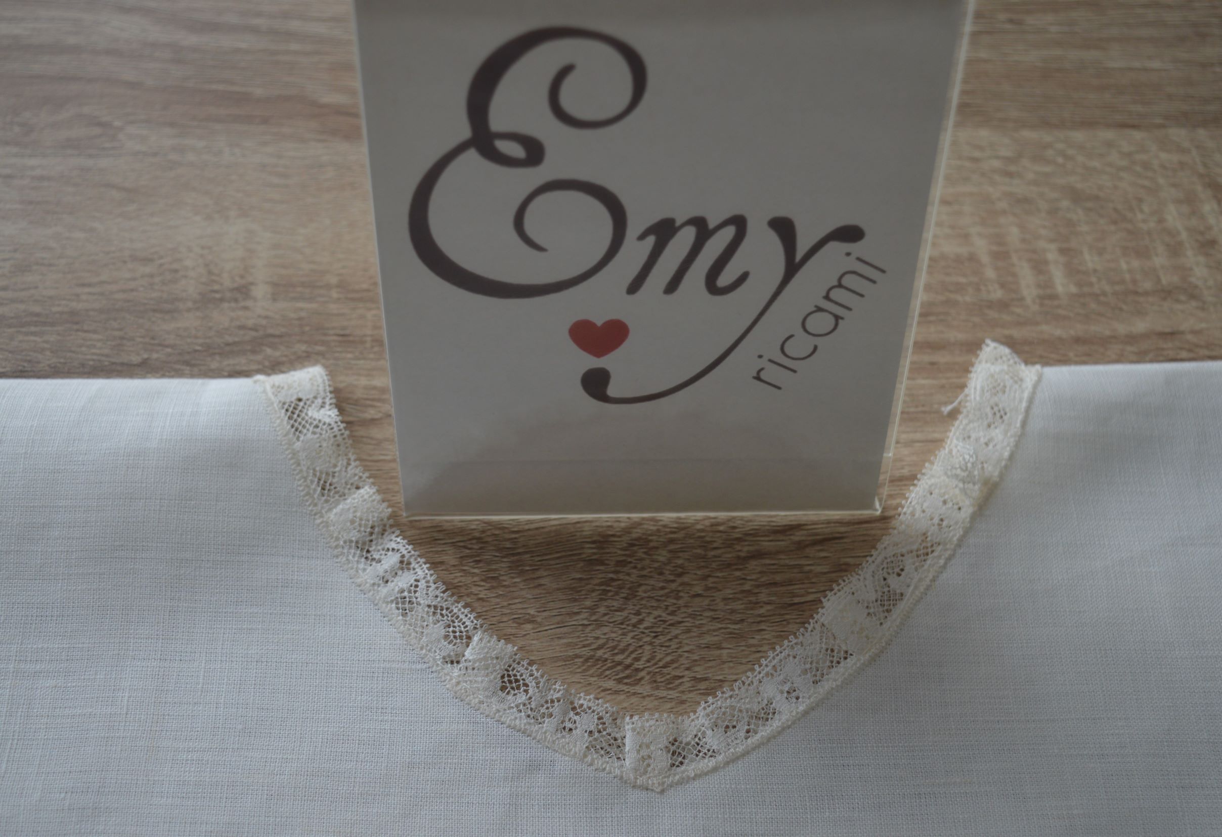 camicino artigianale di Emy ricami composizione 100% puro lino italiano rifinito con un pregiatissimo pizzetto colore avorio su richiesta si puo anche personalizzare