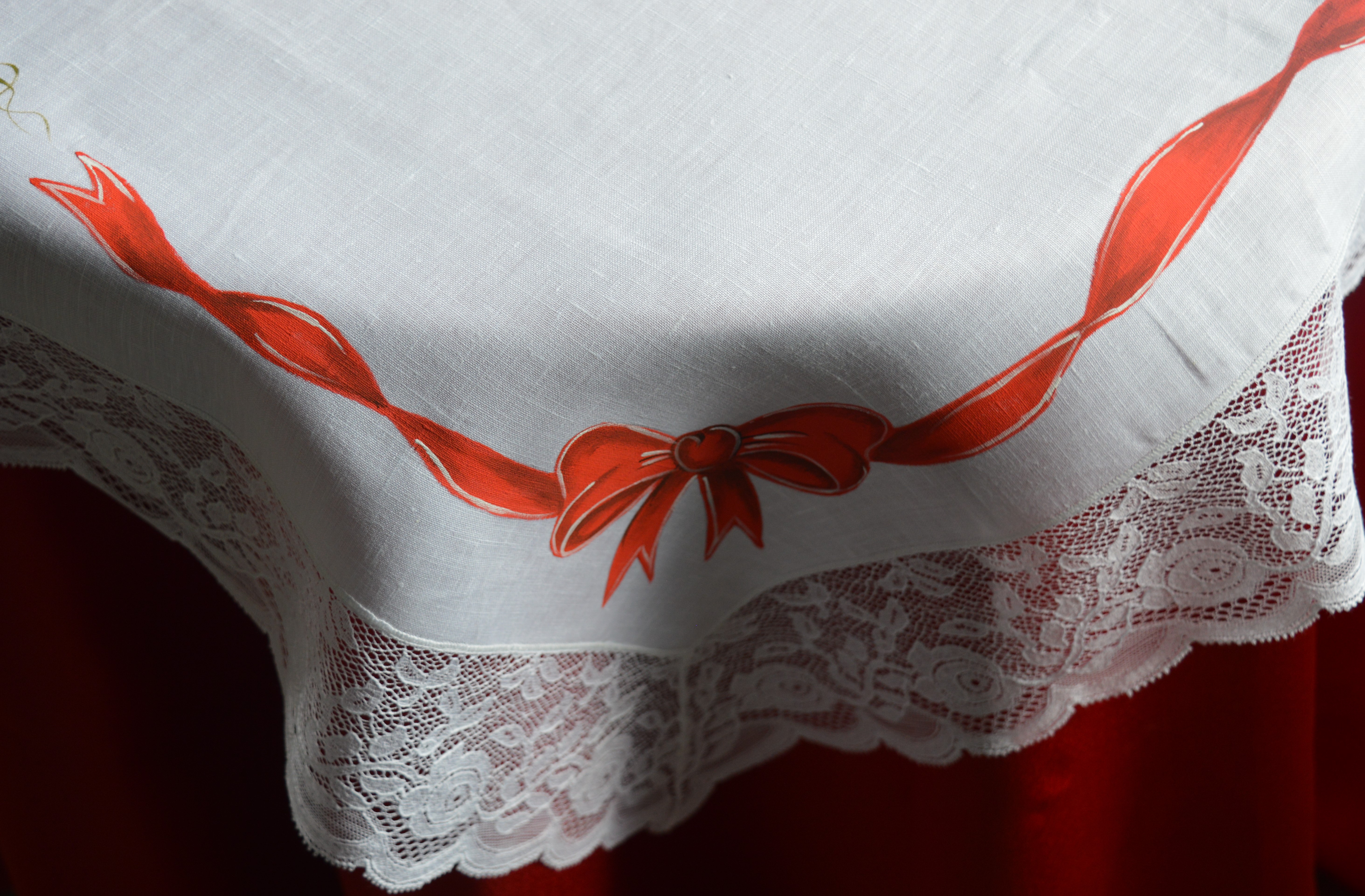 Centro tavola Natalizio in puro lino dipinto a mano di Emy ricami mis cm 82x82 art stella