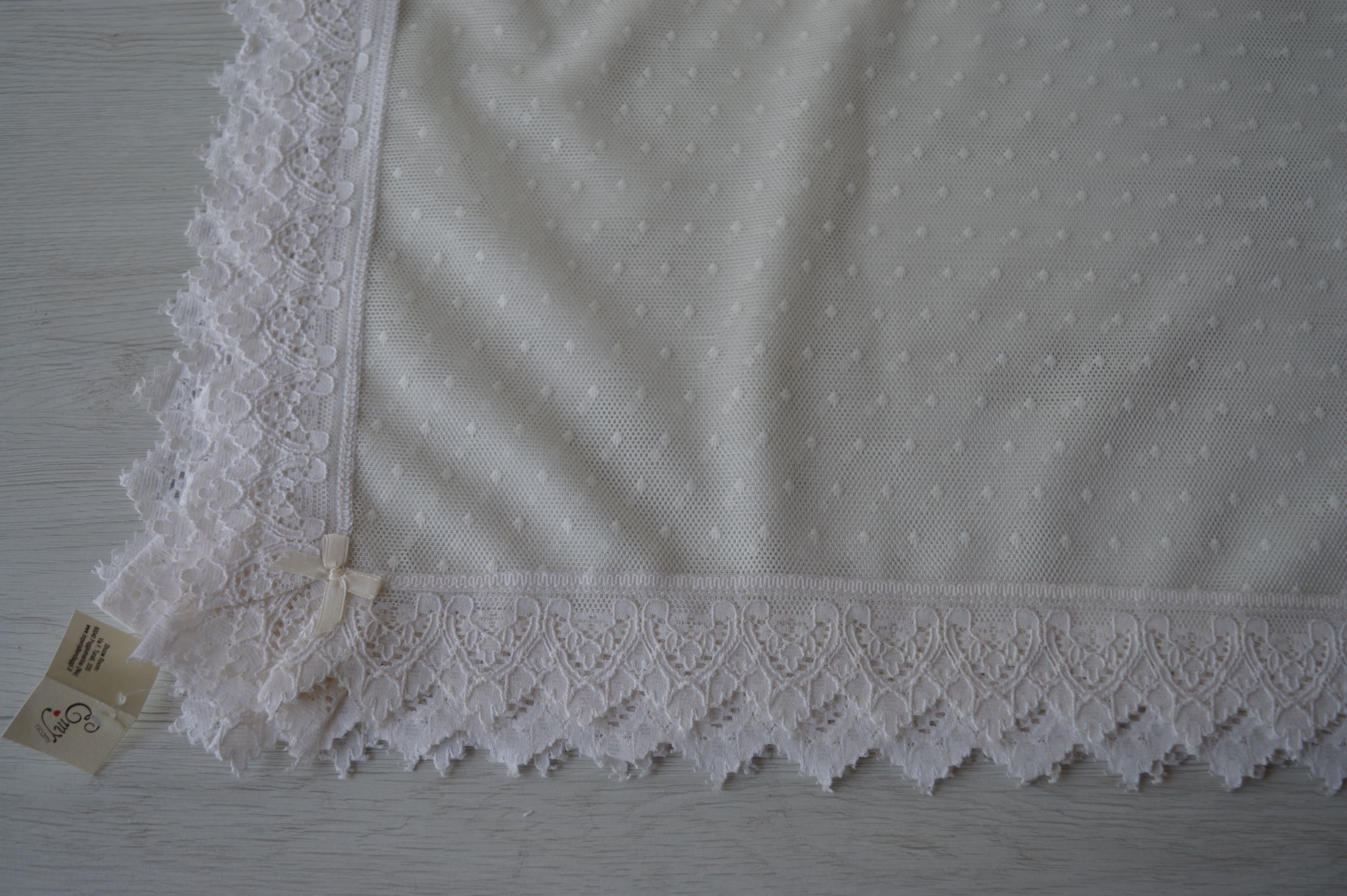 centrotavola quadrato in tulle rifinito con pizzo mis cm 92x92 composizione 100% poliestere colore avorio