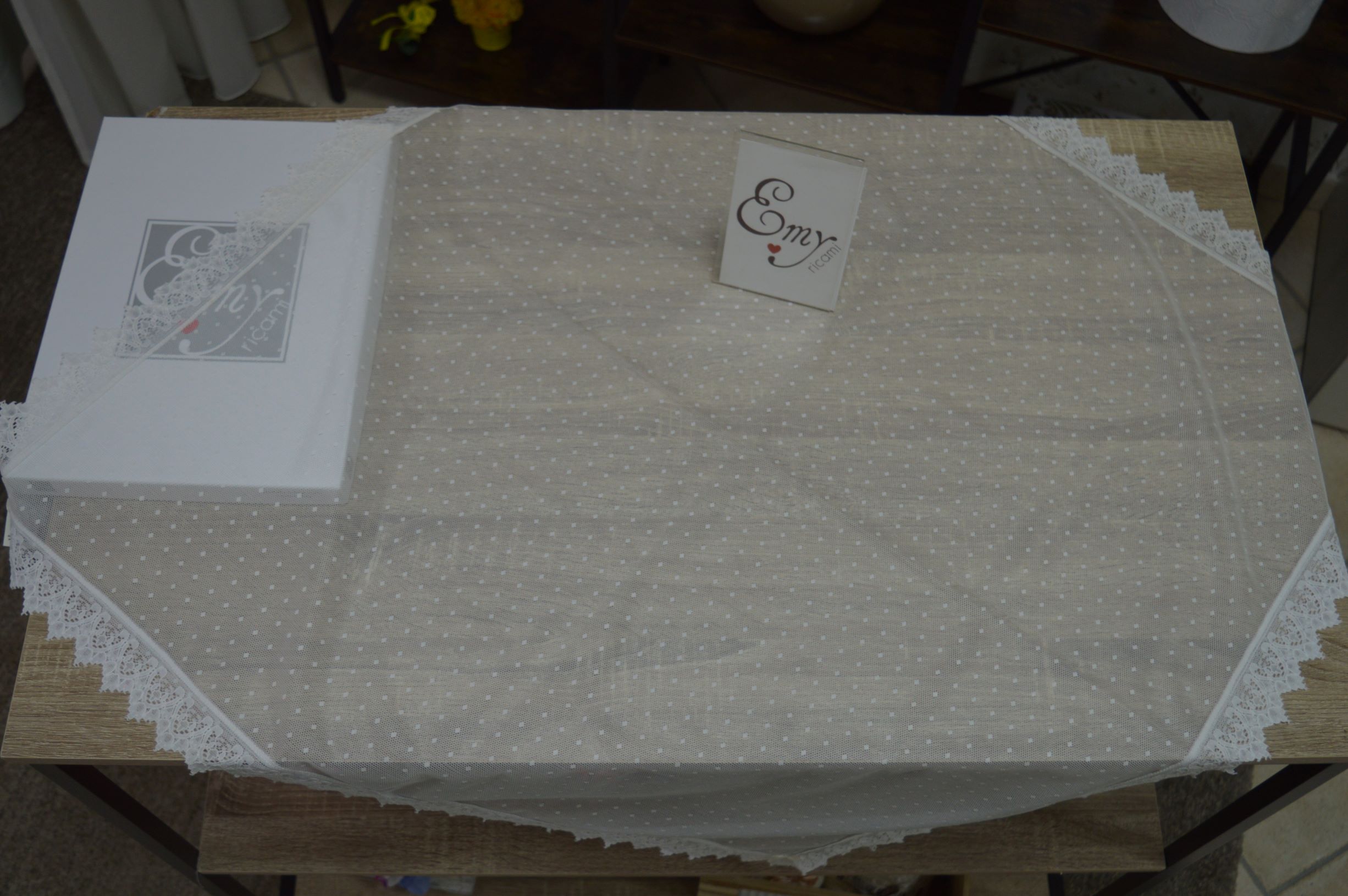 centrotavola quadrato in tulle rifinito con pizzo mis cm 92x92 composizione 100% poliestere colore avorio