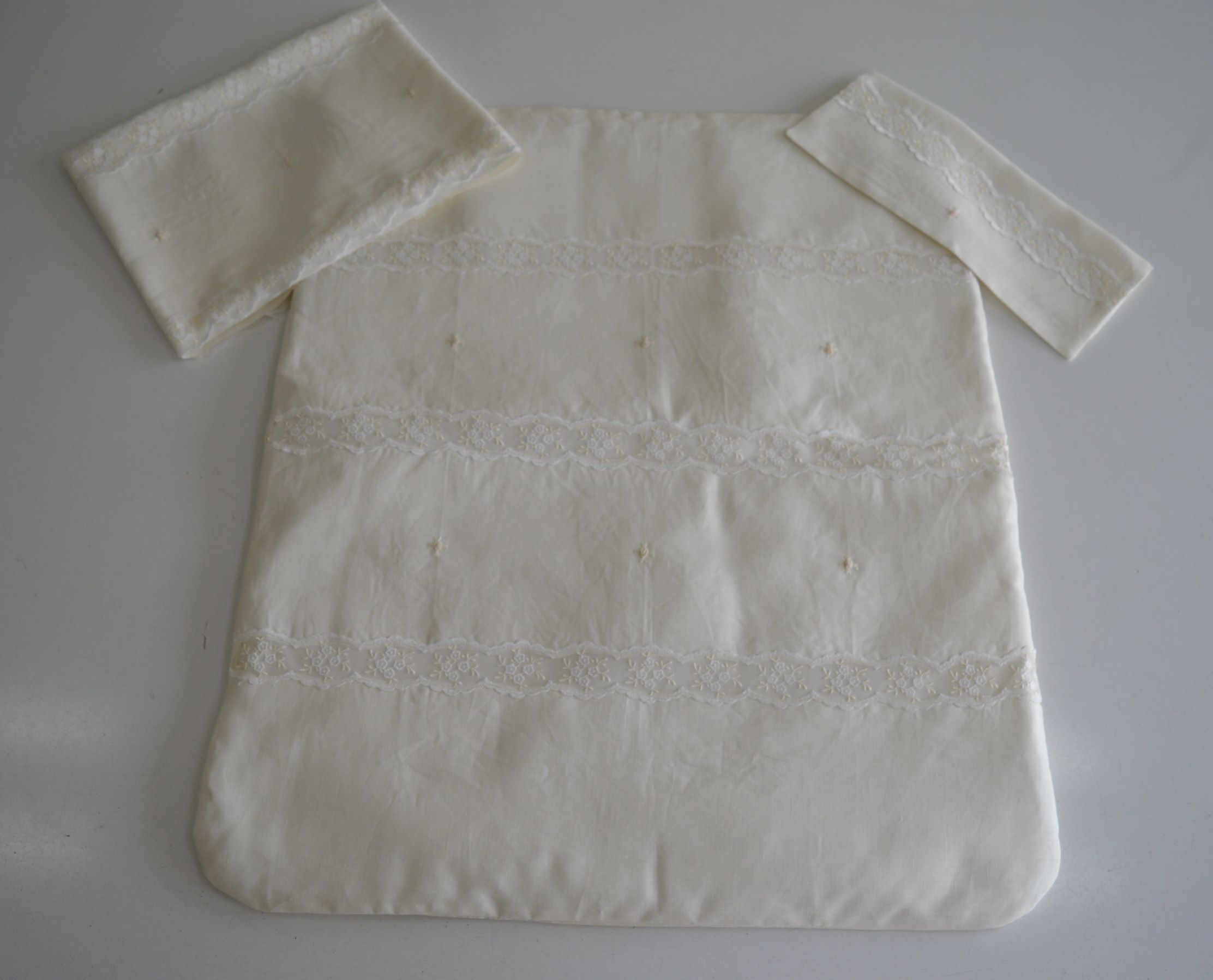 COMPLETO ARTIGIANALE PER CARROZZINA DI EMY RICAMI IN LINO COL AVORIO E BEIGE ART. NISIDA