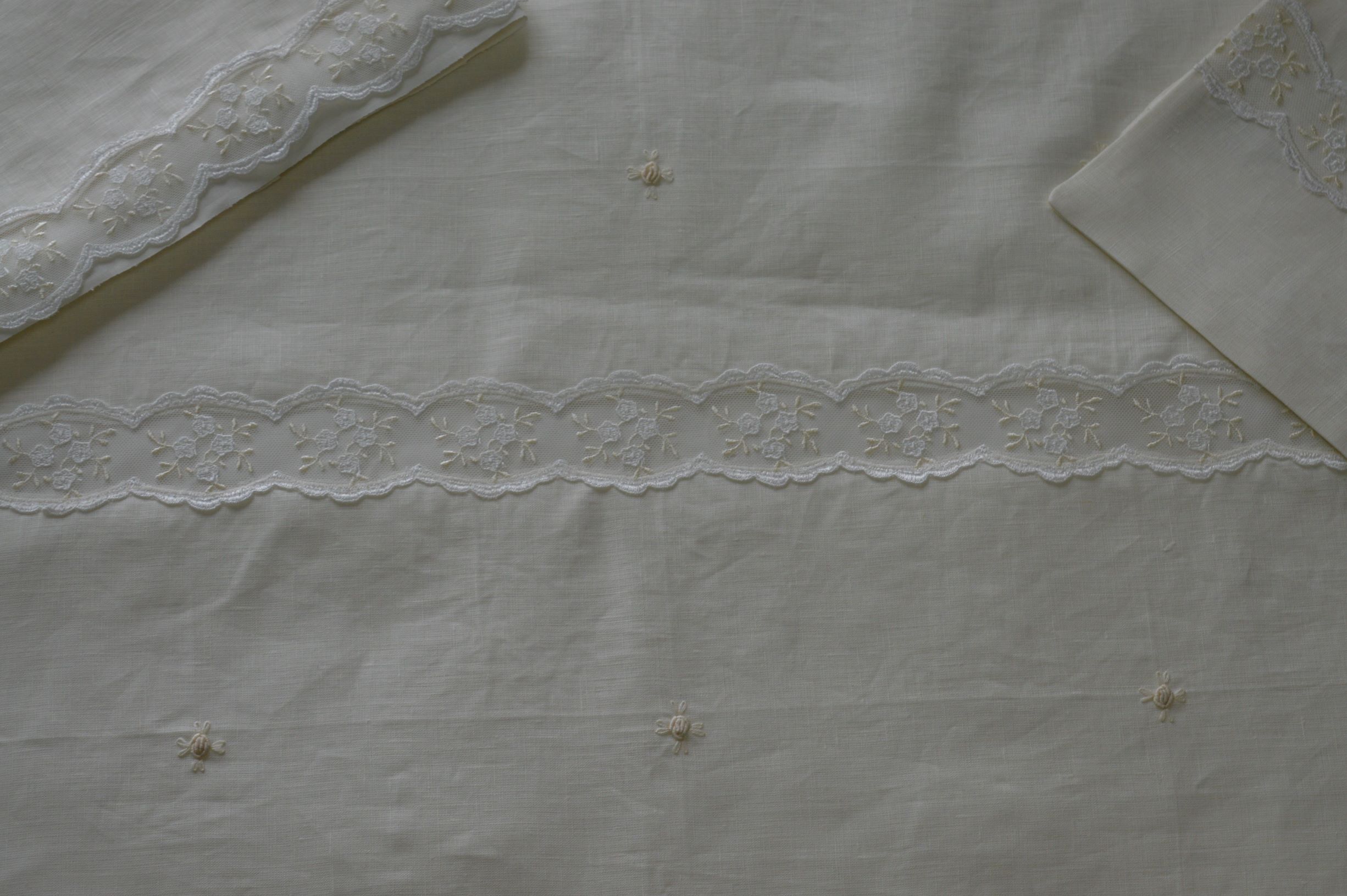 COMPLETO CARROZZINA COPERTINA MISURA: 75X68 CM LENZUOLA MISURA: 70X120 CM FEDERA MISURA: 28X38 CM COMPOSIZIONE: PURO LINO ITALIANO, COLORE AVORIO E BEIGE RIFINITO CON TULLE RICAMATO RICAMATO A MANO CON PUNTI VAPORE COPERTINA SFODERABILE ADATTA SIA PER L'ESTATE CHE PER L'INVERNO. IMBOTTITURA 100% POLIESTERE. IL TUTTO ESEGUITO A MANO DA EMY RICAMI è POSSIBILE PERSONALIZZARE IL PRODOTTO CONTATTANDO I NOSTRI INFO.