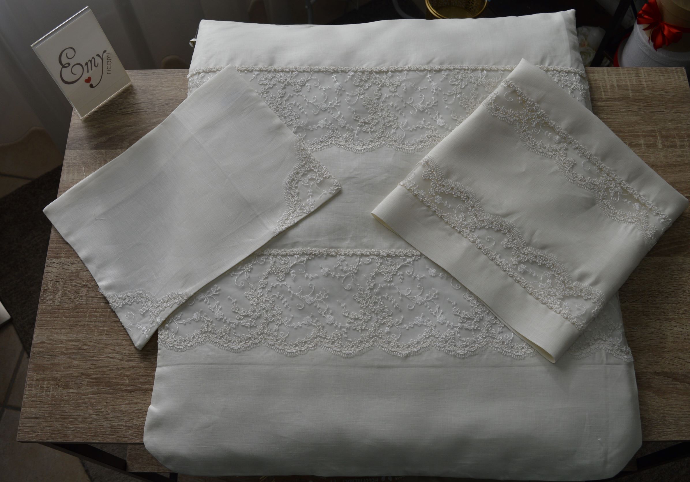 COMPLETO PER CARROZZINA COL AVORIO COPERTINA MISURA CM 65X80 LENZUOLINO SOPRA MISURA: CM65X110 FEDERA MISURA: 28X38 CM COMPOSIZIONE: PURO LINO ITALIANO RIFINITO CON PIZZO REBRODE COPERTINA SFODERABILE ADATTA SIA PER L'ESTATE CHE PER L'INVERNO. IMBOTTITURA 100 % POLIESTERE. IL TUTTO ESEGUITO A MANO. NEL CASO SIATE INTERESSATI A PERSONALIZZARE IL PRODOTTO O AD ACQUISTARE UN QUANTITATIVO MAGGIORE NON ESITATE A CONTATTARCI AI NOSTRI INFO.