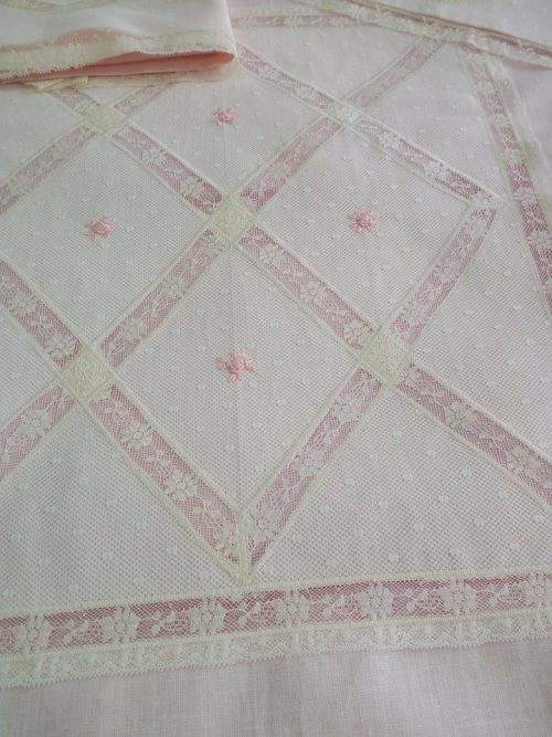 RICAMATO A MANO CON PUNTI VAPORE ROSA