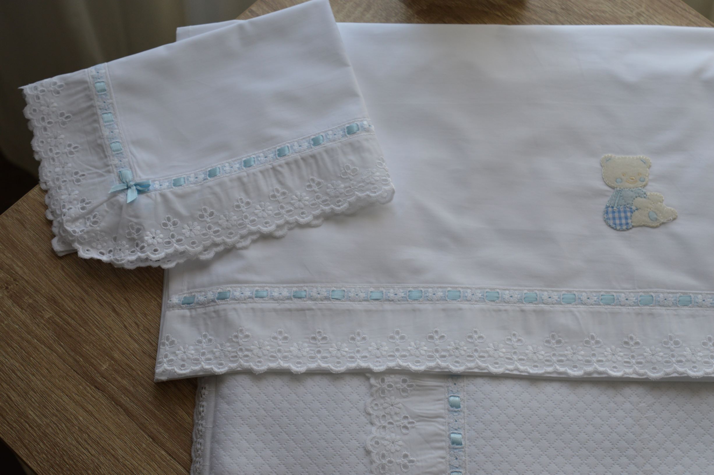 COMPETO CARROZZINA RIFINITO CON PIZZO SAN GALLO CREAZIONI DI EMY RICAMI COLORE BIANCO E CELESTE COPRILETTO TRAPUNTATO SFODERABILE MIS CM 64X80 LENZUOLO SOPRA MIS CM 66X116 FEDERA 33X48 COMPOSIZIONE COPRILETTO 100% COTONE PIQUET IMBOTTITURA 100% POLIESTERE ANALLERGICO LENZUOLINO E FEDERA 100% COTONE PERCALLE è POSSIBILE SU RICHIESTA PERSONALIZZARE IL COMPLETINO.