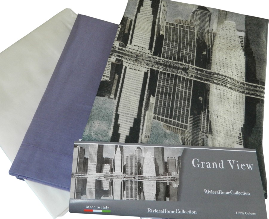 COMPLETO LENZUOLA SINGOLE CON STAMPA DIGITALE ARTICOLO EB 3271 0105 COMPOSIZIONE 100% COTONE PERCALLE FEDERA STAMPA DIGITALE DELLA METROPOLI LENZUOLA SOTTO CON ELASTICO: TINTA UNITA LENZUOLA SOPRA: TINTA UNITA MADE IN ITALY