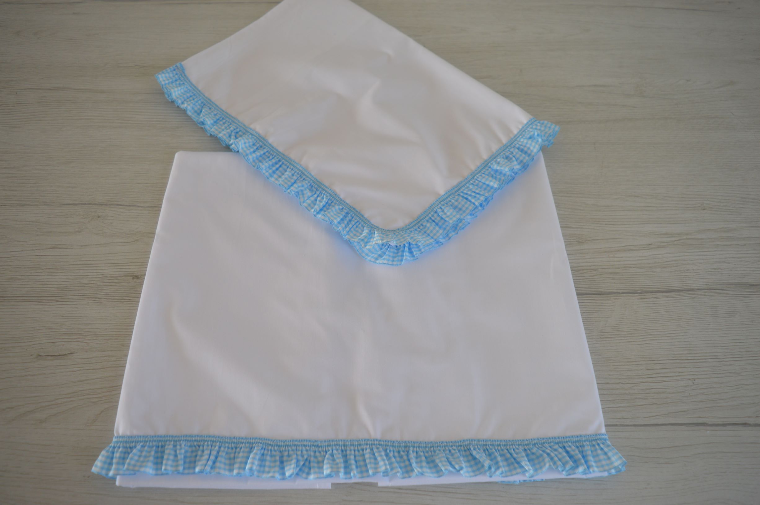 completo lenzuolino più federa per carrozzina di Emy ricami col bianco e celeste art Leo