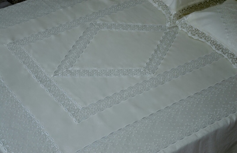 COMPLETO LETTO IN PURO LINO ART. FOGLIA COORDINATO COMPOSTO: COPRILETTO DI LINO MATRIMONIALE MISURA 270X270 CM LENZUOLO SOPRA MISURA 260X270 CM N° 2 FEDERE MISURA 50X80 CM COMPOSIZIONE: PURO LINO BELLORA 306 COLORE AVORIO, RIFINITO CON PIZZO IN TULLE AVORIO CHIARO RICAMATO A MANO NEL CASO SIATE INTERESSATI A PERSONALIZZARE IL PRODOTTO COME PREFERITE O AD ACQUISTARE UN QUANTITATIVO MAGGIORE NON ESISTATE A CONTATTARCI AI NOSTRI INFO. PER UN MAGGIORE QUANTITATIVO TEMPI DI CONSEGNA MAX 15 GG.