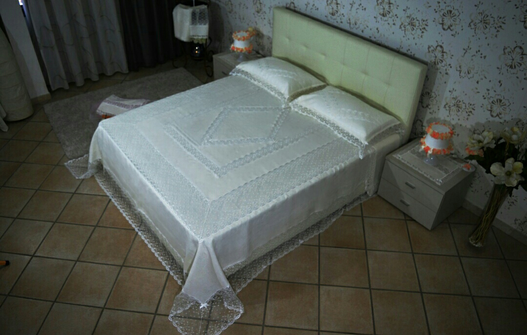 COMPLETO LETTO IN PURO LINO ART. FOGLIA COORDINATO COMPOSTO: COPRILETTO DI LINO MATRIMONIALE MISURA 270X270 CM LENZUOLO SOPRA MISURA 260X270 CM N° 2 FEDERE MISURA 50X80 CM COMPOSIZIONE: PURO LINO BELLORA 306 COLORE AVORIO, RIFINITO CON PIZZO IN TULLE AVORIO CHIARO RICAMATO A MANO NEL CASO SIATE INTERESSATI A PERSONALIZZARE IL PRODOTTO COME PREFERITE O AD ACQUISTARE UN QUANTITATIVO MAGGIORE NON ESISTATE A CONTATTARCI AI NOSTRI INFO. PER UN MAGGIORE QUANTITATIVO TEMPI DI CONSEGNA MAX 15 GG.