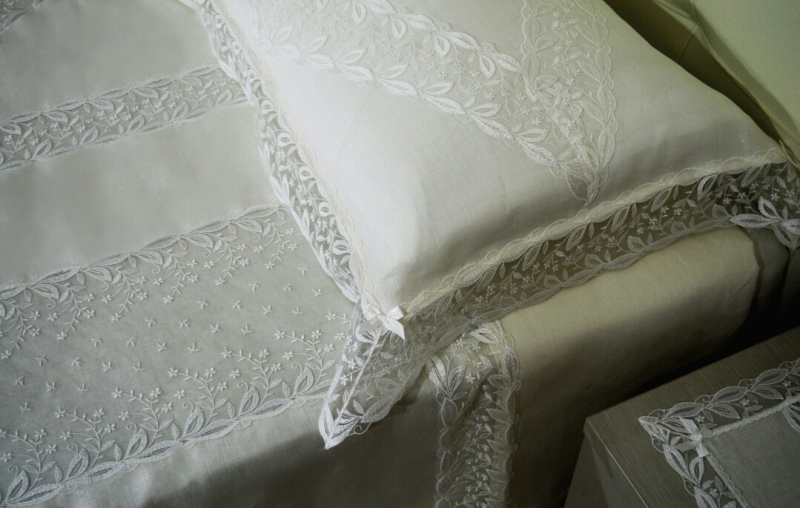 COMPLETO LETTO IN PURO LINO ART. FOGLIA COORDINATO COMPOSTO: COPRILETTO DI LINO MATRIMONIALE MISURA 270X270 CM LENZUOLO SOPRA MISURA 260X270 CM N° 2 FEDERE MISURA 50X80 CM COMPOSIZIONE: PURO LINO BELLORA 306 COLORE AVORIO, RIFINITO CON PIZZO IN TULLE AVORIO CHIARO RICAMATO A MANO NEL CASO SIATE INTERESSATI A PERSONALIZZARE IL PRODOTTO COME PREFERITE O AD ACQUISTARE UN QUANTITATIVO MAGGIORE NON ESISTATE A CONTATTARCI AI NOSTRI INFO. PER UN MAGGIORE QUANTITATIVO TEMPI DI CONSEGNA MAX 15 GG.