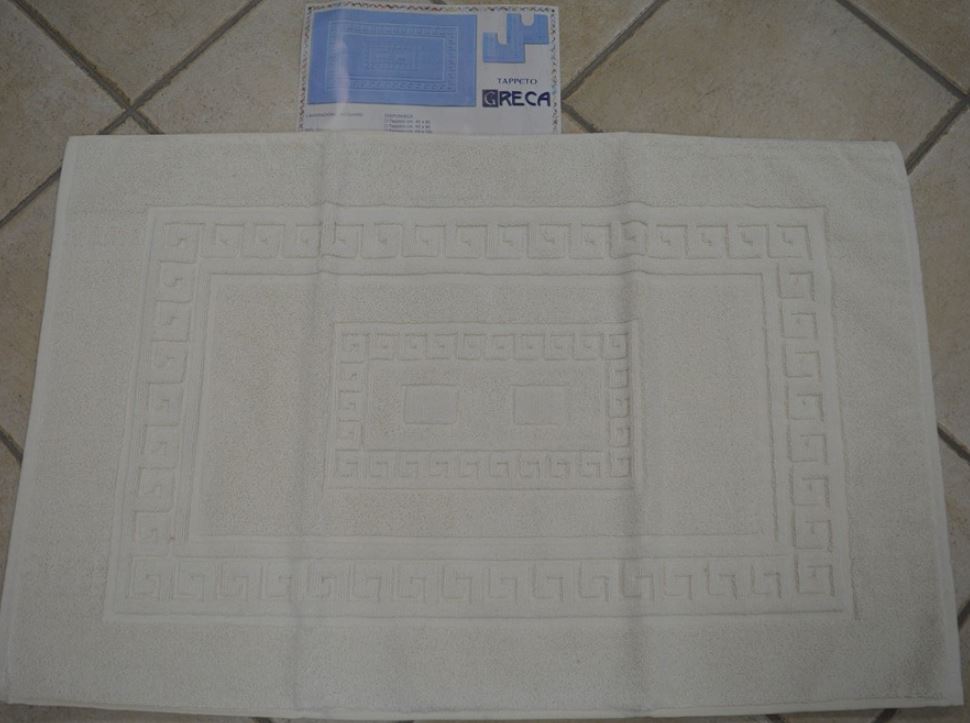 SET COMPLETO TAPPETI BAGNO TORINO DOUBLE FACE TRE PEZZI IL GRANDE MISURA 60X90 DUE PICCOLI MISURA 45X60 COMPOSIZIONE 80% COTONE 20% POLIESTERE PESO 1400 GR AL MQ COLORE PANNA PRODOTTO ADATTO ANCHE X ALBERGO MADE IN ITALY