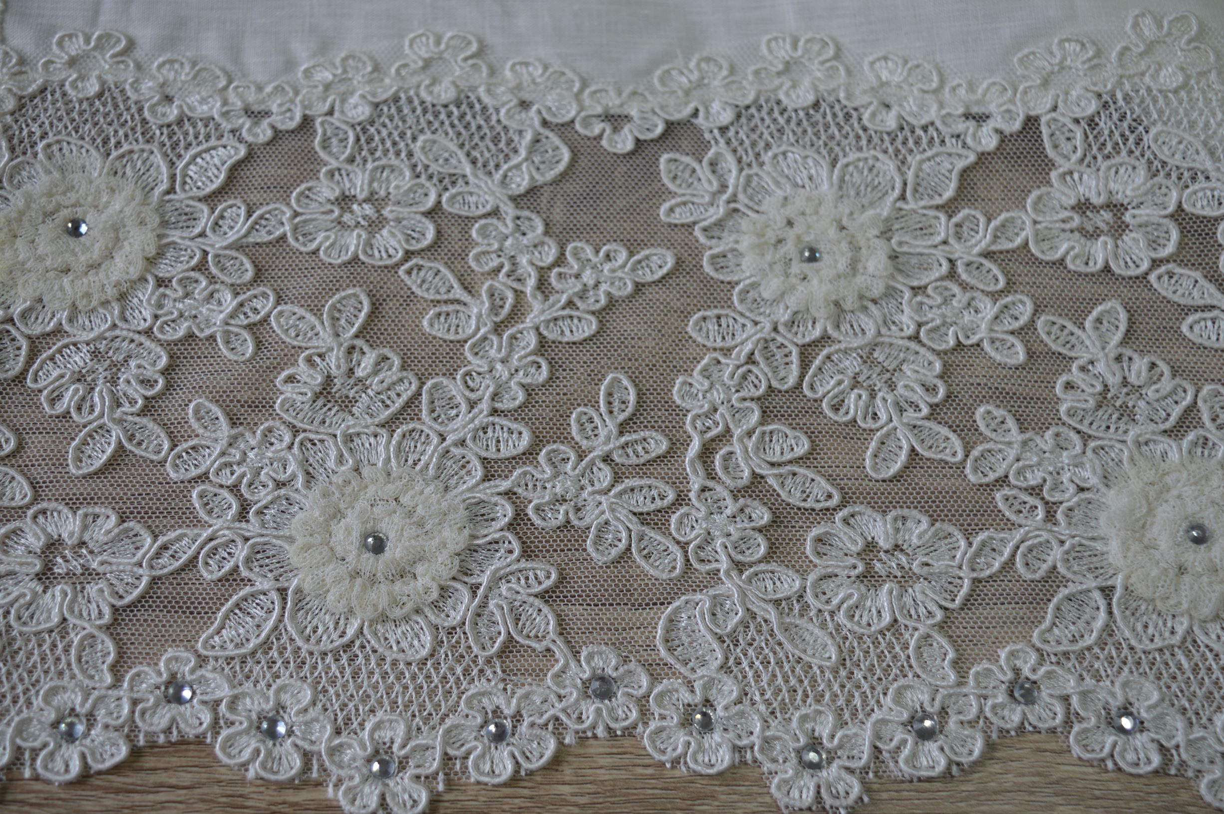 COPPIA 1+1 ASCIUGAMANI LAVORAZIONE ARTIGIANALE COMPOSIZIONE 100% PURO LINO ITALIANO RIFINITE CON PREGIATISSIMO PIZZO REBRODE E PUNTI LUCE SWAROVSKI COLORE NATURALE MIS VISO CM 65X116 MIS OSPITE CM 41X70