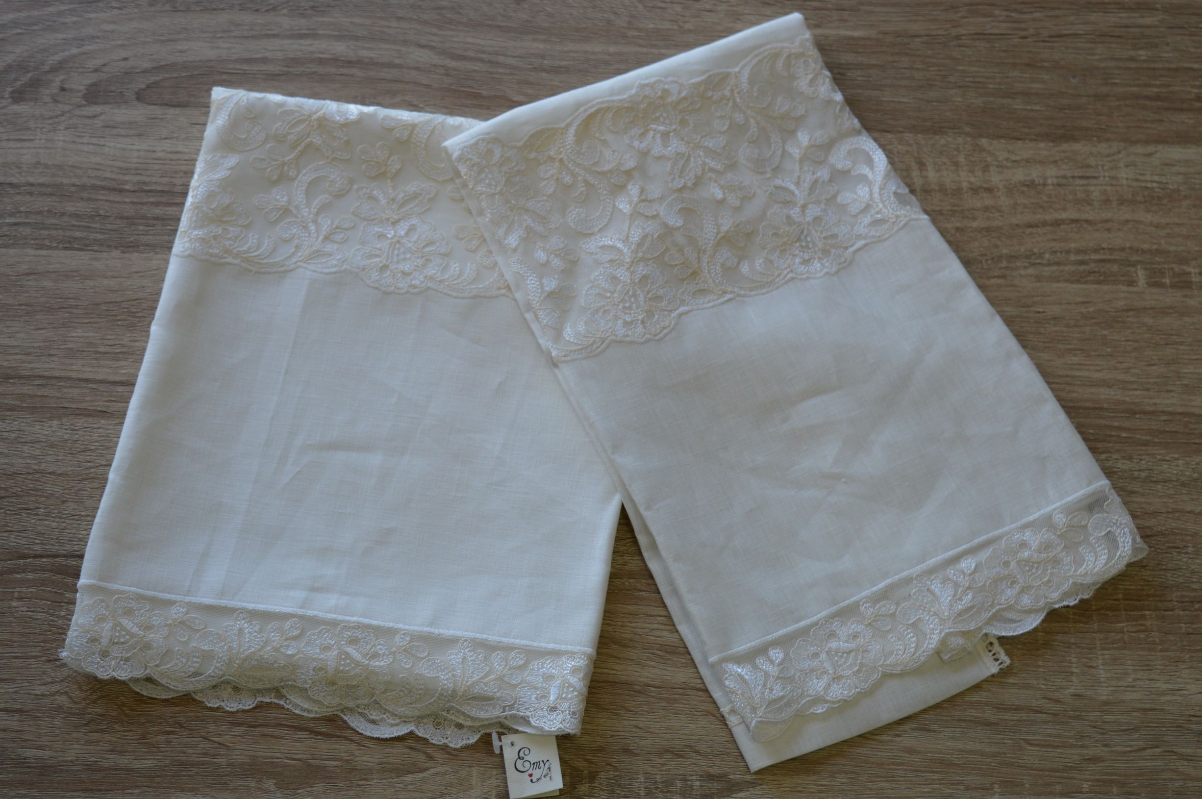 Coppia asciugamani in puro lino e tulle di Emy ricami col avorio art Tea