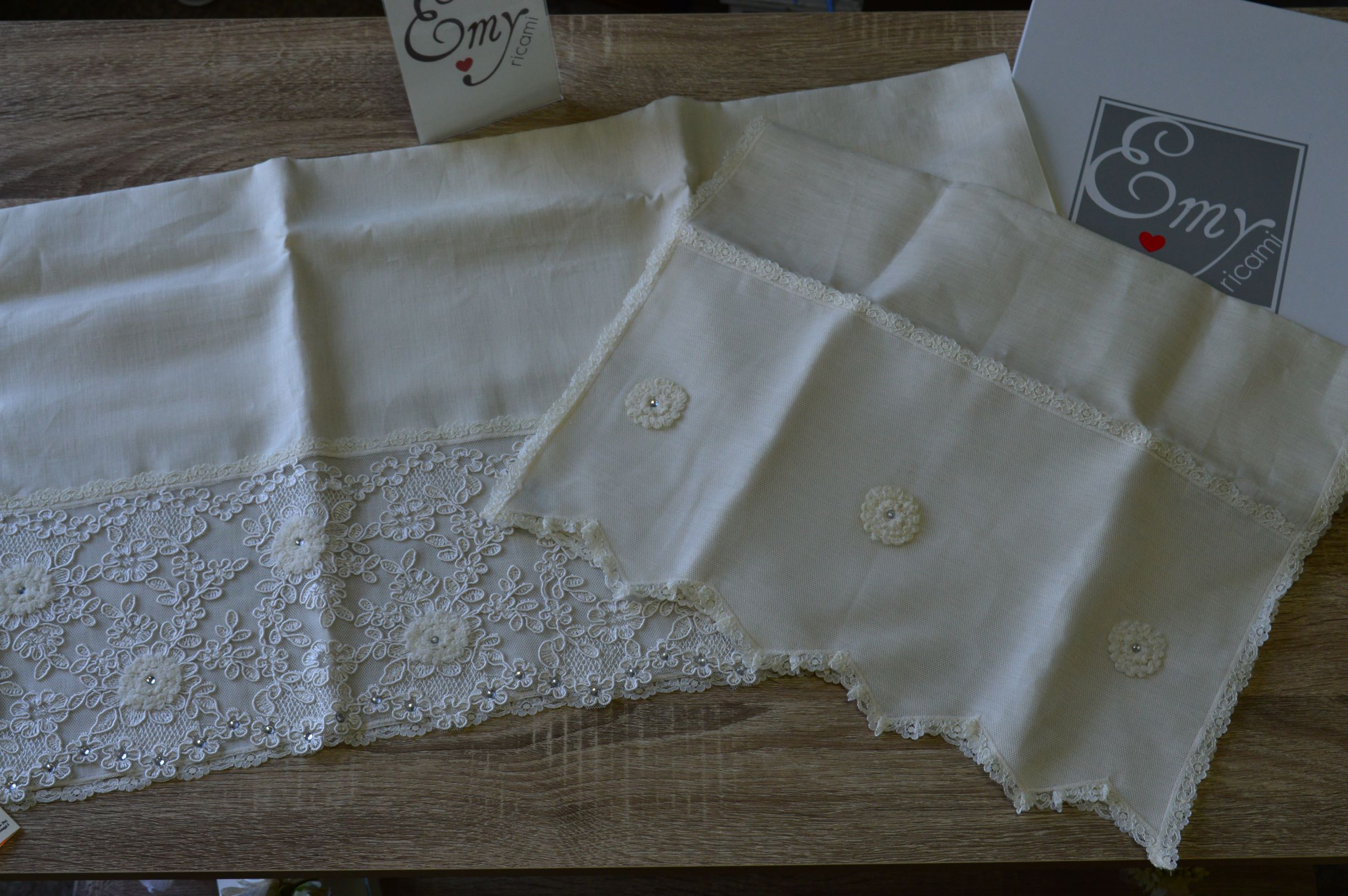 COPPIA ASCIUGAMANI ARTIGIANALE COLBEIGE DI EMY RICAMI IN LINO E REBRODE ART SARA