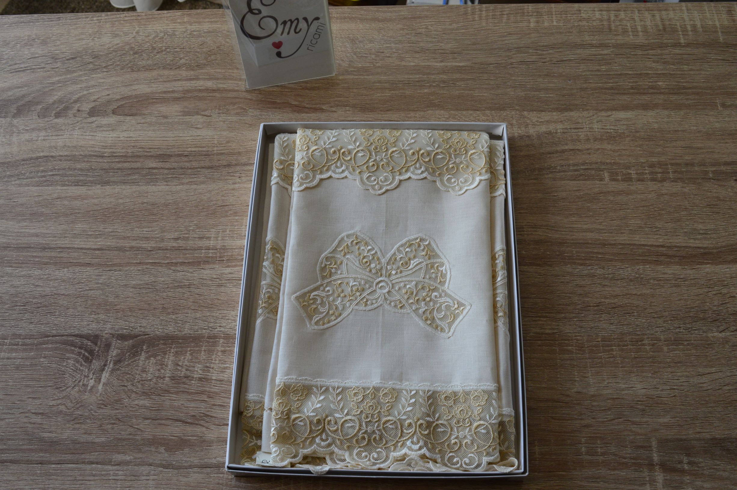 COPPIA ASCIUGAMANI ARTIGIANALE DI EMY RICAMI IN LINO E TULLE ART LARISSA