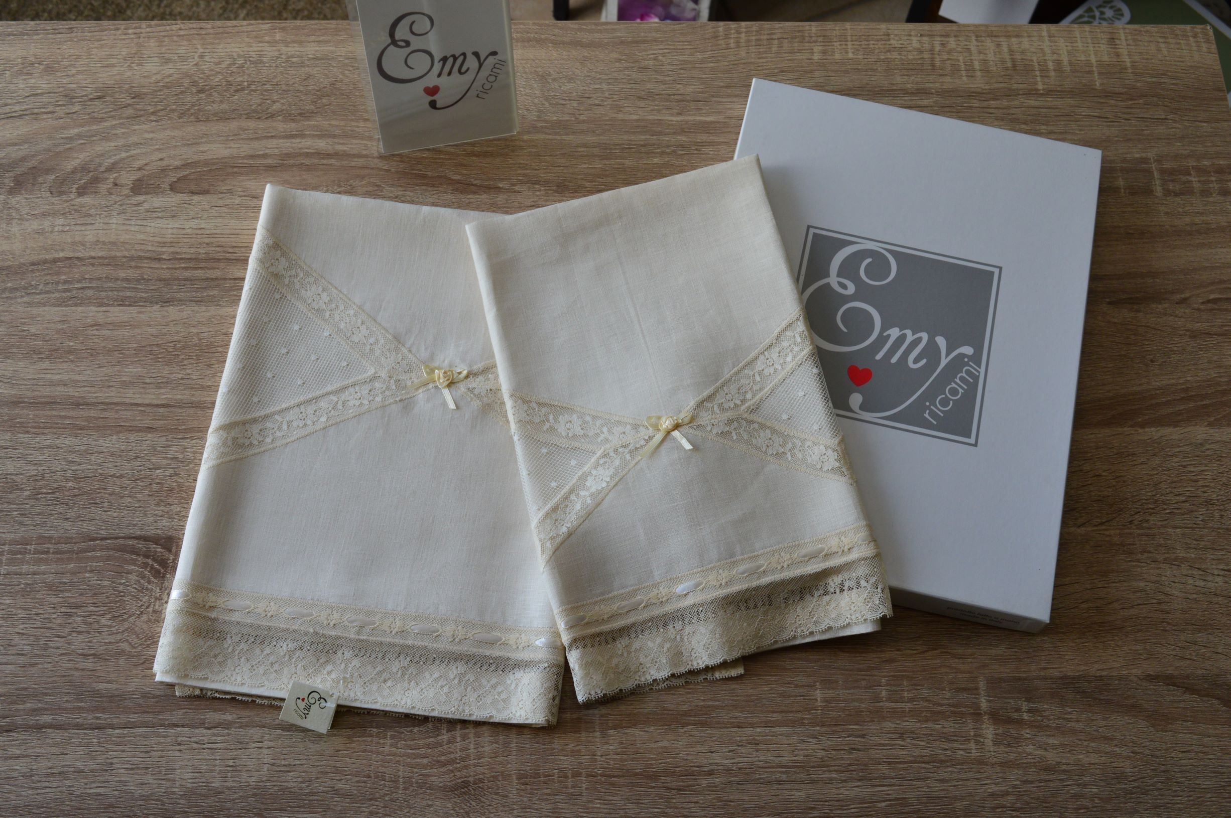 COPPIA 1+1 ASCIUGAMANI LAVORAZIONE ARTIGIANALE COMPOSIZIONE 100% PURO LINO ITALIANO RIFINITE CON PIZZO VALENCIENNE E CON ORLO A GIORNO FATTO A MANO COLORE AVORIO MIS VISO CM 70X128 MIS OSPITE 45X68