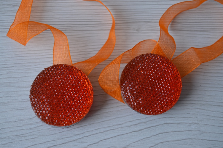 COPPIA CALAMITE CON FETTUCCIA X MODELLARE TENDAGGI DISEGNO DISCO DIAMETRO 4 COLORE ARANCIO DIMENSIONI DIAMETRO CM 4 XALTA CM 1 MADE IN PRC IL PREZZO SI INTENDE A COPPIA
