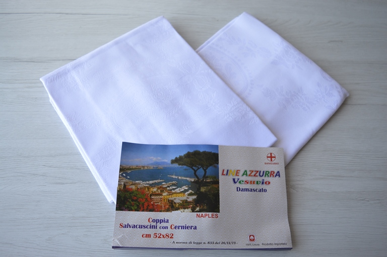 COPPIA FEDERA X CUSCINI DAMASCATO ARTICOLO VESUVIO MISURA 52X82 CON CERNIERA COLORE BIANCO COMPOSIZIONE 100% COTONE DAMASCATO PRODOTTO SANITARIO ADATTO ANCHE X ALBERGHI