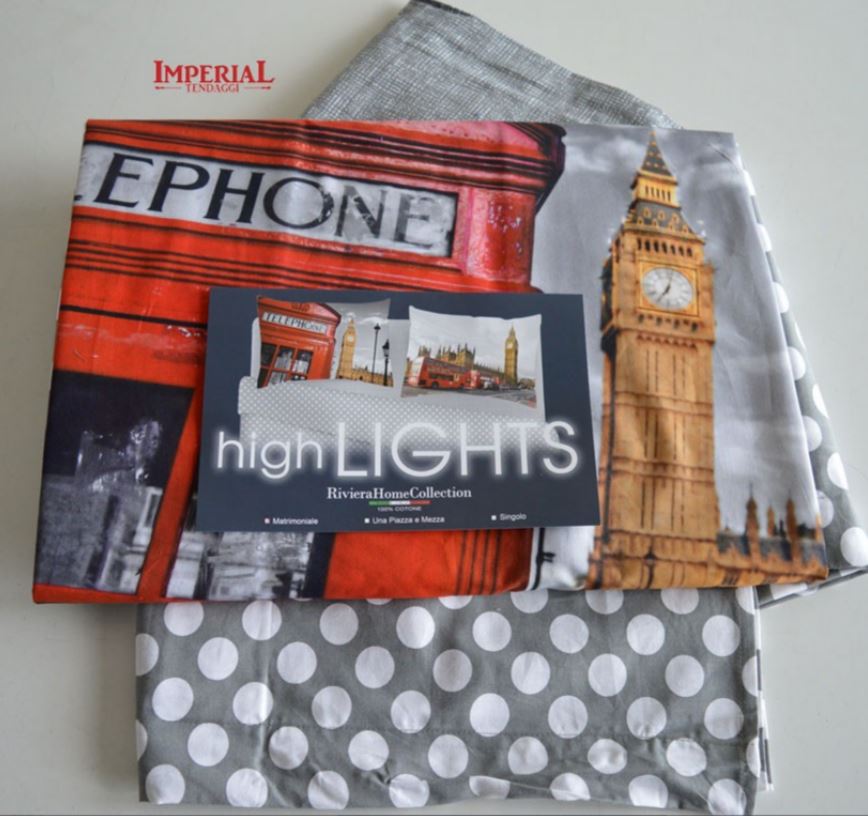 COMPLETO LETTO FANTASIA LONDRA COLORE TORTORA DUE FEDERE STAMPA DIGITALE MISURA 52X82 LENZUOLO SOTTO FANTASIA CON ELASTICO MISURA 90X195 LENZUOLO SOPRA FANTASIA MISURA 240X285 COMPOSIZIONE 100% COTONE