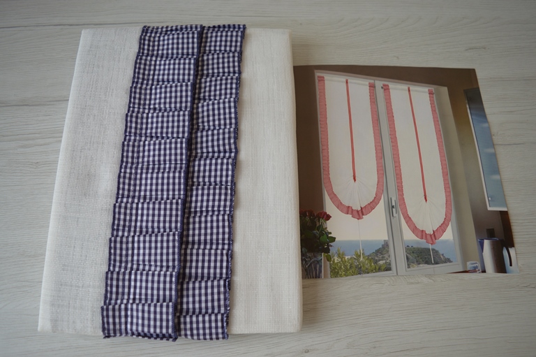 COPPIA TENDINA CONFEZIONATA ADATTABILE A TUTTI I TIPI DI VETRO MISURA LARGA CM 60X 230 ALTA FONDO AVORIO CON RICCI A QUADRI COLORATO COMPOSIZIONE 100% POLIESTERE