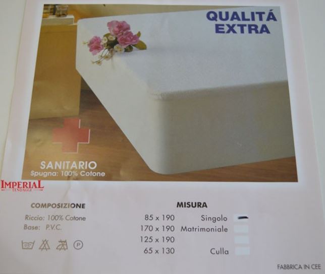 COPRIMATERASSO UNA PIAZZA E MEZZASANITARIO PROTECTOR COMPOSIZIONE SPUGNA 100% COTONE BASE PVC RICCIO 100% COTONE COLORE BIANCO MISURA 125X190 MASSIMA ASSORBENZA E CONSERVA BENE IL MATERASSO VISITATE IL NOSTRO NEGOZIO DOVE TROVERETE TANTI ALTRI ARTICOLI
