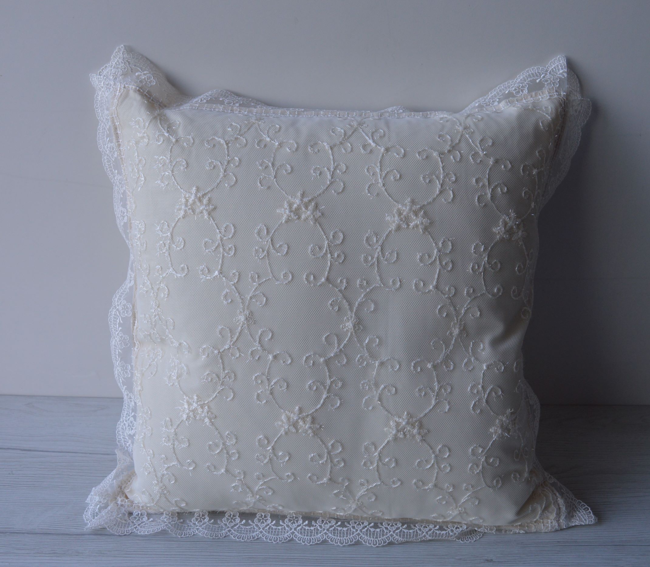 cuscino arredo sfoderabile in tulle ricamato by Emy ricami misura cm 40x40 colore avorio composizione 100% poliestere