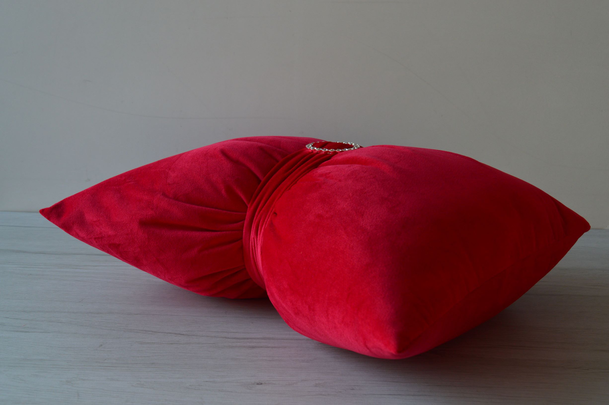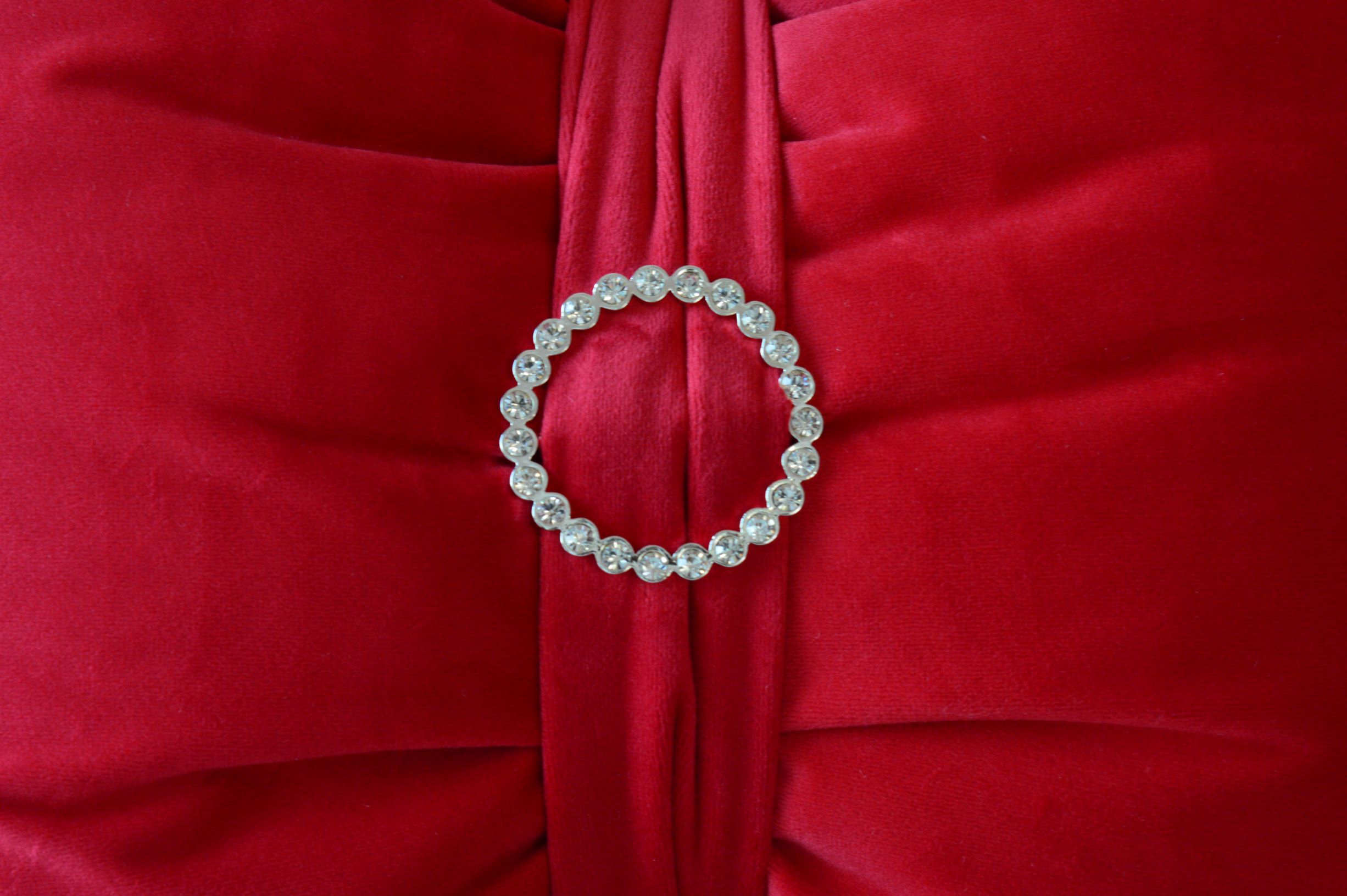 CUSCINO IN VELLUTINO ART ELISA GIOIELLO MISURA: CM 40X35 COLORE ROSSO CON GIOIELLO SWAROVSKI COMPOSIZIONE: 65% COTONE - 35% POLIESTERE IMBOTTITURA: 100% POLIESTERE ANALLERGICO CUSCINO SFODERABILE IL PREZZO SI INTENDE AL SINGOLO CUSCINO.