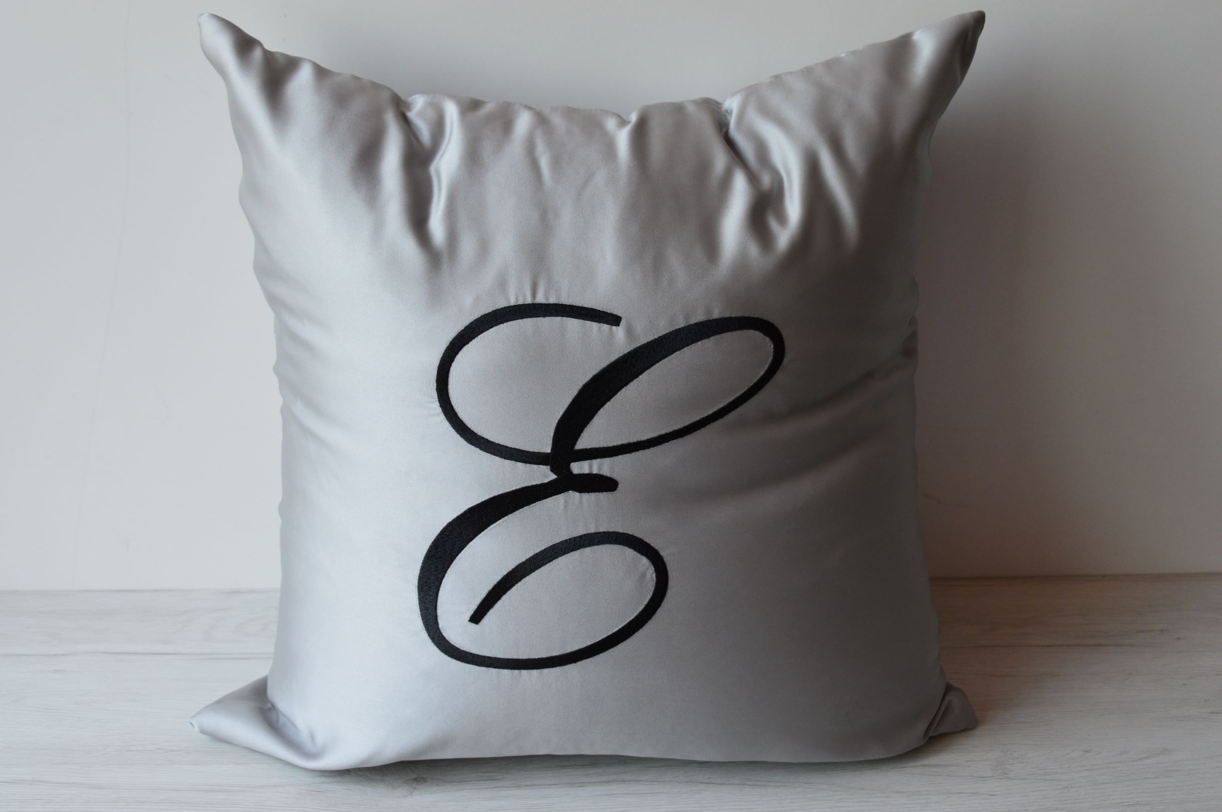 CUSCINO SFODERABILE CON INIZIALE RICAMATO LETTERA E MISURA: CM 50X50 COLORE GRIGIO PERLA COMPOSIZIONE: 100% POLIESTERE IMBOTTITURA: 100% POLIESTERE ANALLERGICO CUSCINO SFODERABILE. IL PREZZO SI INTENDE AL SINGOLO CUSCINO.