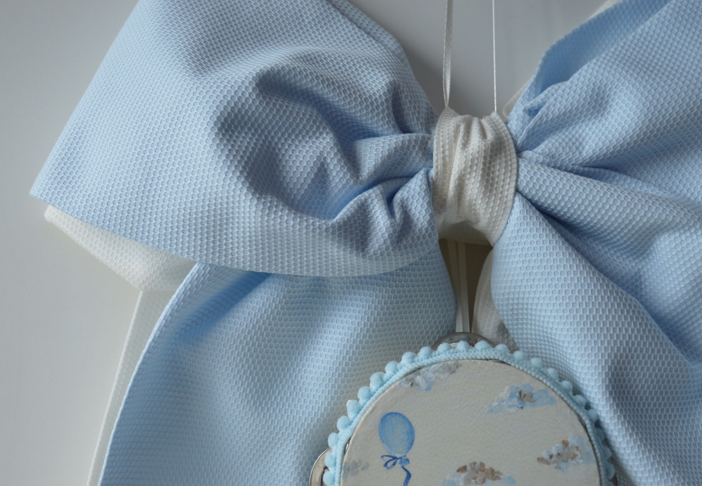 DOPPIO FIOCCO NASCITA ARTIGIANALE CON TAMBURELLO DI EMY RICAMI COL CELESTE ART ELMO