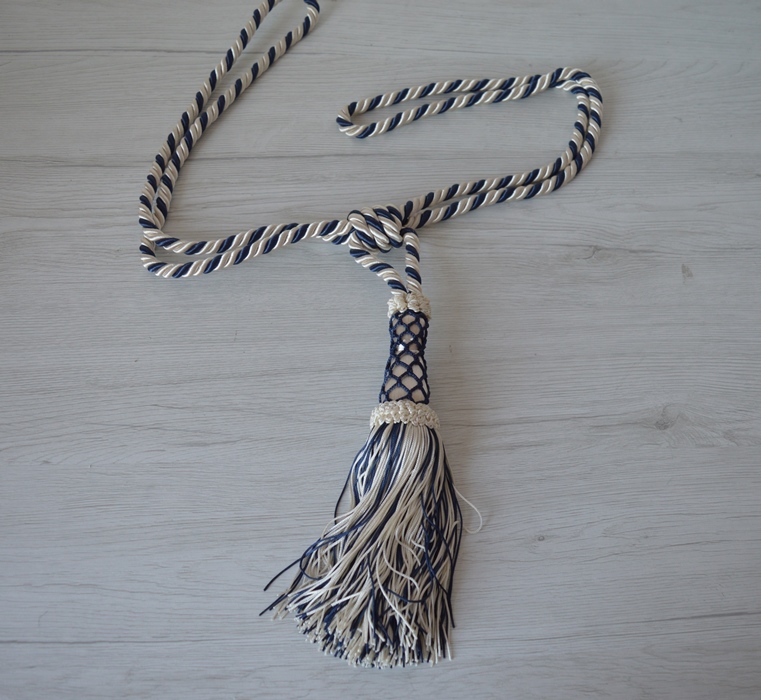 EMBRASSE X TENDE COLORE BLU E AVORIO LUNGO CM 55 CIRCONFERENZA FIOCCO CM 10 CORDA DI SPESSORE COME UNA PENNA STILO COMPOSIZIONE 100% POLIESTERE IL PREZZO SI INTENDE PER SINGOLO PEZZO