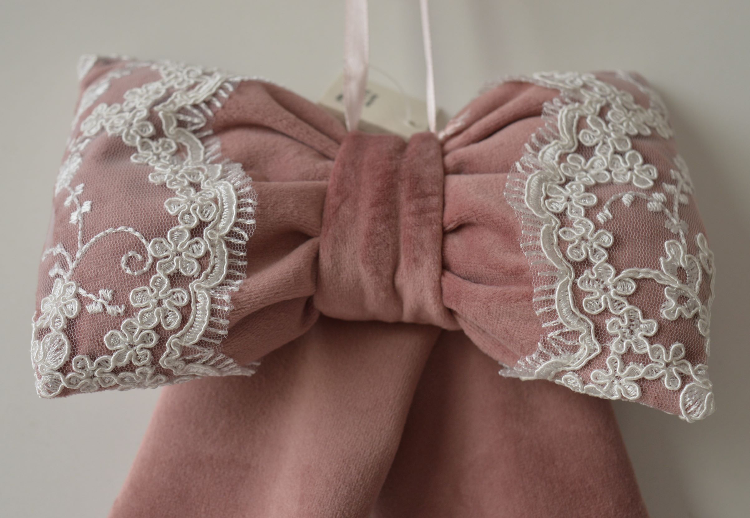 Fiocco nascita imbottito artigianale di Emy ricami composizione vellutino 100% poliestere imbottitura 100% poliestere colore rosa mis cm 16x23 rifinito con un pregiatissimo pizzo rebrode