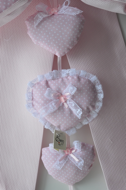 FIOCCO NASCITA COLORE ROSA CON CUORI IN COTONE PIQUET ART GIUSY
