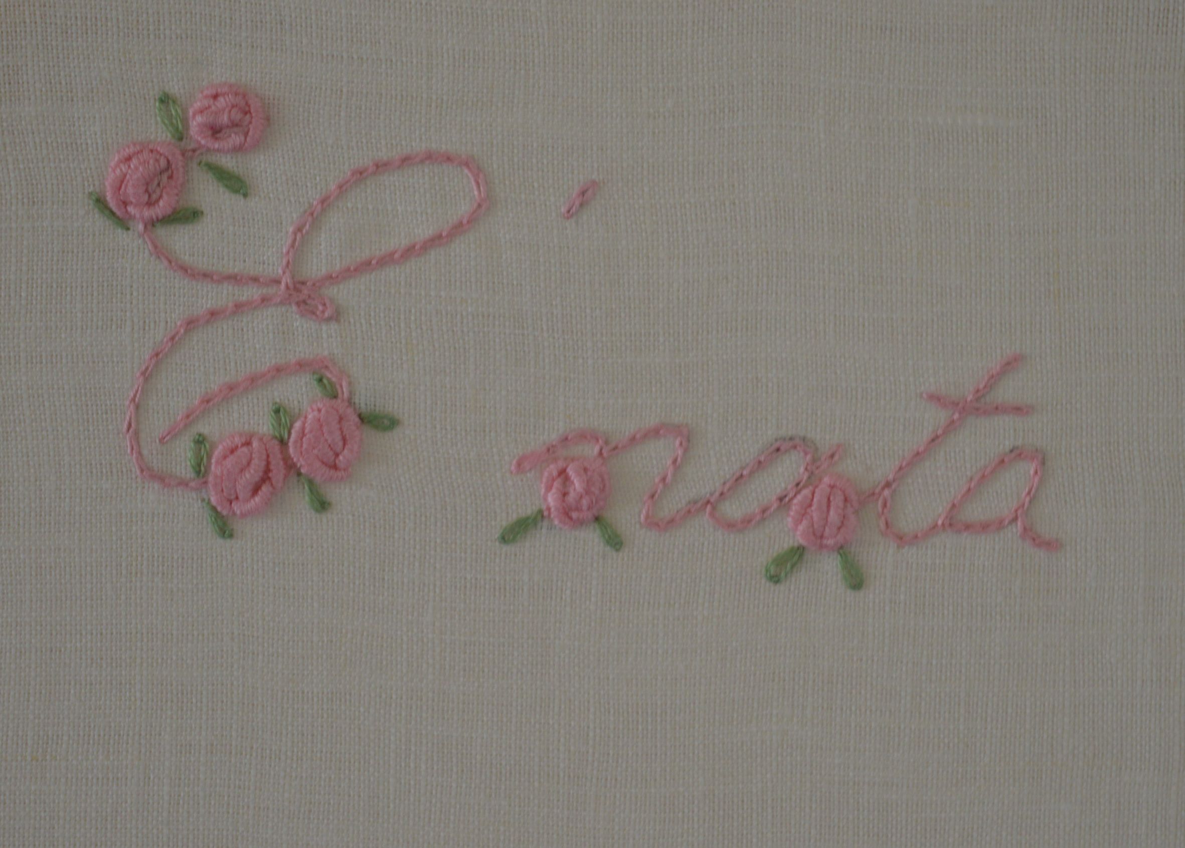 FIOCCO NASCITA CON TELAIO RICAMATO A MANO DI EMY RICAMI COL ROSA ART TELAIO