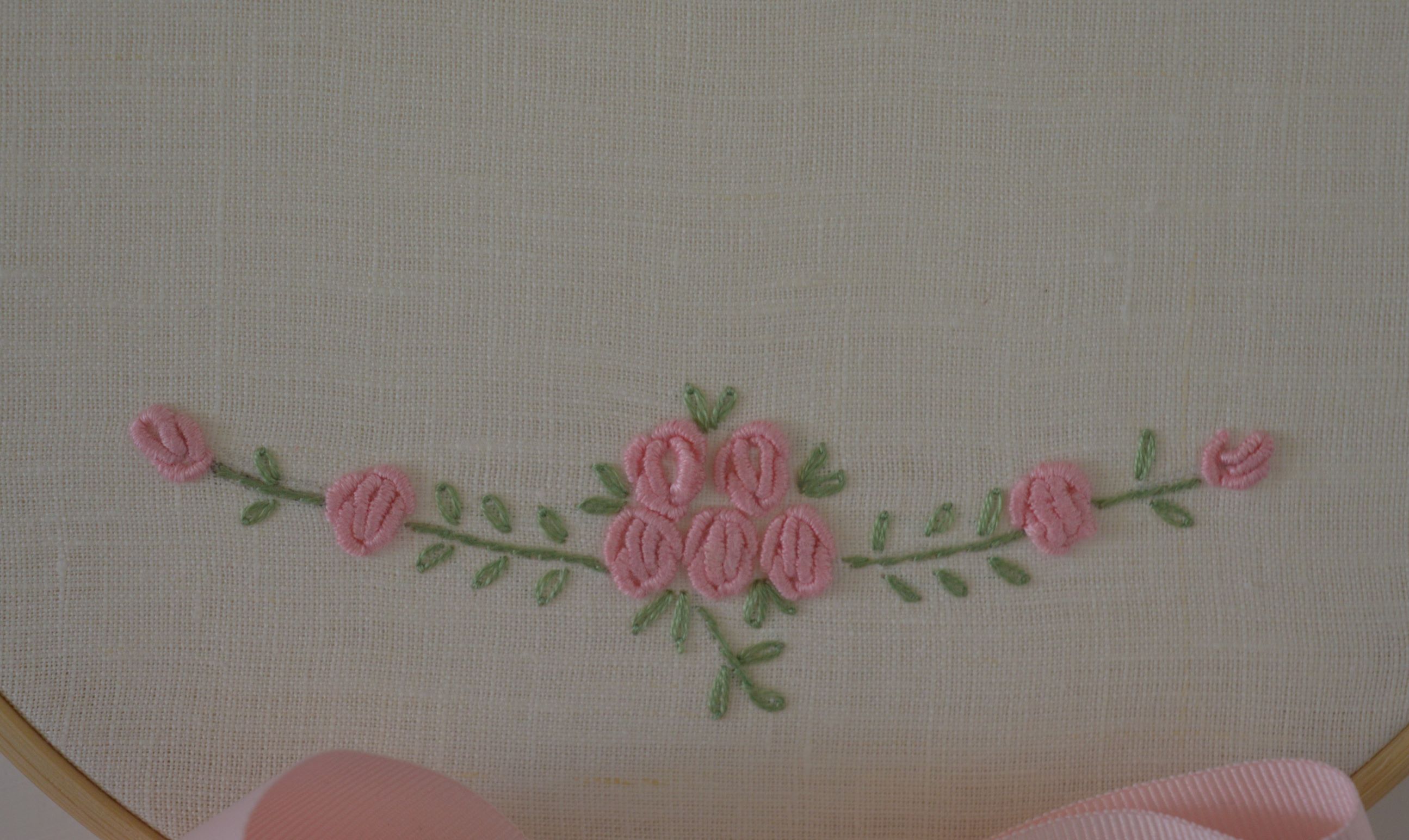 FIOCCO NASCITA CON TELAIO RICAMATO A MANO DI EMY RICAMI COL ROSA ART TELAIO