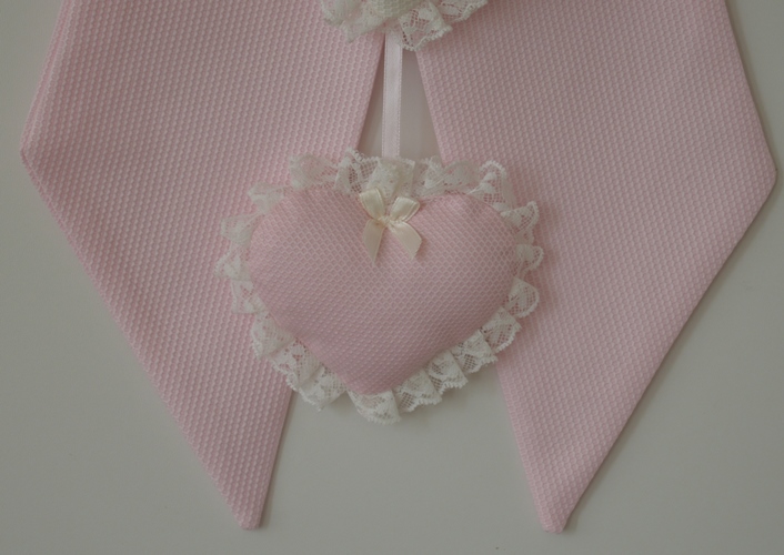 FIOCCO NASCITA COLORE ROSA DIPINTO A MANO CON CUORI IN COTON