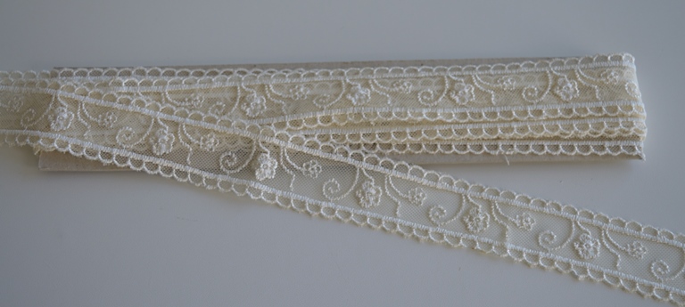 INTRAMEZZO DI TULLE RICAMATO ART. ASMARA ALTO : CM 3 COLORE : AVORIO COMPOSIZIONE : BASE TULLE RICAMATO 100% POLIESTERE IL PREZZO E IL QUANTITATIVO SI INTENDE IN MT LINEARI