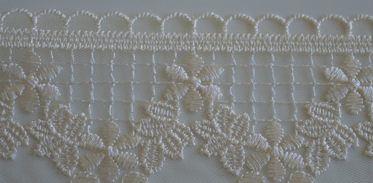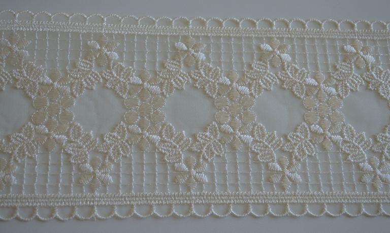 INTRAMEZZO TULLE RICAMATO ART. AGRA ALTO : CM 13 COLORE: AVORIO COMPOSIZIONE : BASE TULLE RICAMATO 100% POLIESTERE IL PREZZO E IL QUANTITATIVO SI INTENDE IN MT LINEARI