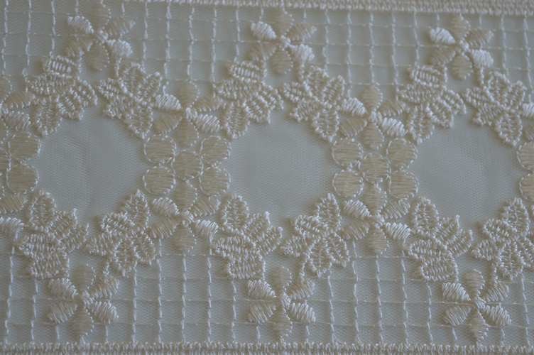 INTRAMEZZO TULLE RICAMATO ART. AGRA ALTO : CM 13 COLORE: AVORIO COMPOSIZIONE : BASE TULLE RICAMATO 100% POLIESTERE IL PREZZO E IL QUANTITATIVO SI INTENDE IN MT LINEARI