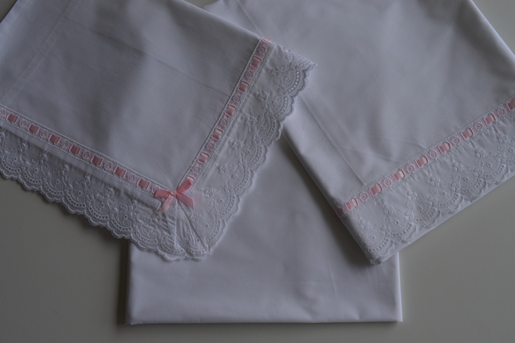 lenzuola carrozzina pizzo san gallo rosa di emy ricami art livia