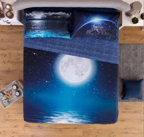 LENZUOLA COPRILETTO MATRIMONIALE MOON CHARM STAMPA DIGITALE SU TUTTO IL LENZUOLO LENZUOLO SOPRA 250X290 LENZUOLO SOTTO 180X200 + ANGOLI 2 FEDERE 52X 82 COMPOSIZIONE 100% COTONE MADE IN ITALY