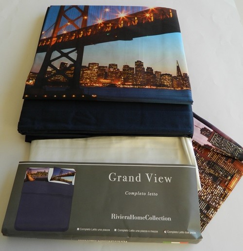 COMPLETO LENZUOLA DUE POSTI BRIDGE FEDERE STAMPA DIGITALE COME FOTO MIS 50X80 LENZUOLO SOPRA UNITO BALZATO 250X290 LENZUOLO SOTTO TINTA UNITA CON ANGOLI MIS 175X 290 COTONE PERCALLE 100% ELEGANTI, BELLE,E CON COLORI SOLIDI MADE IN ITALY